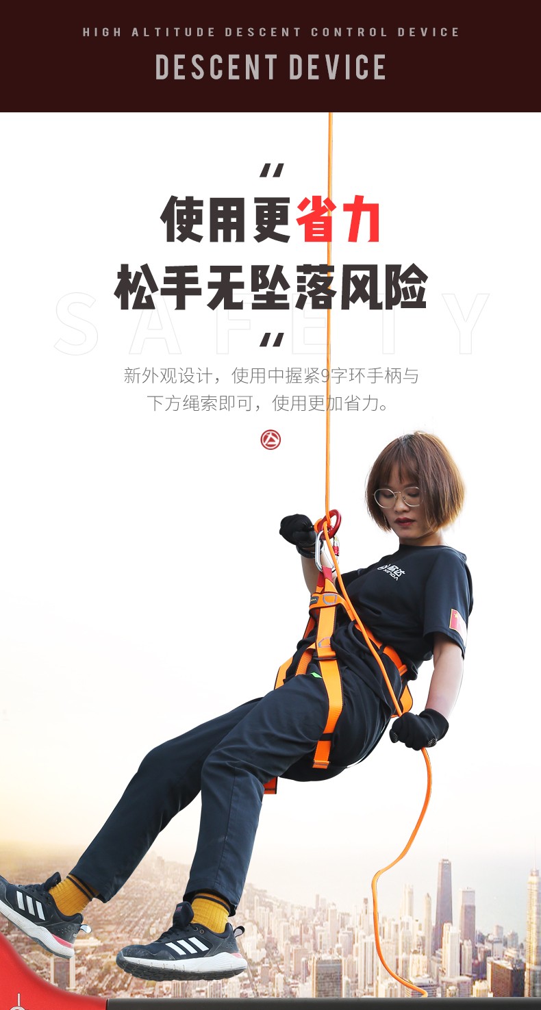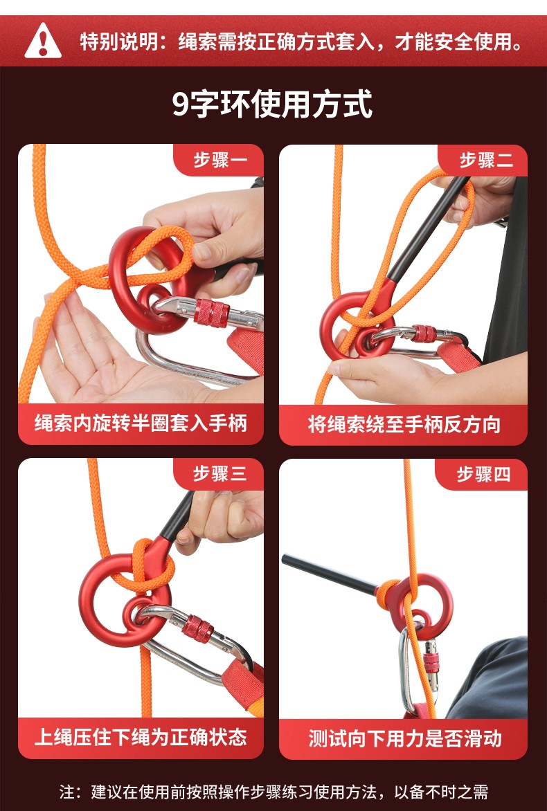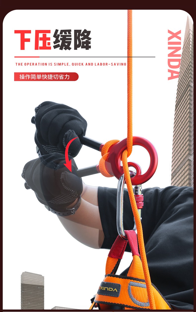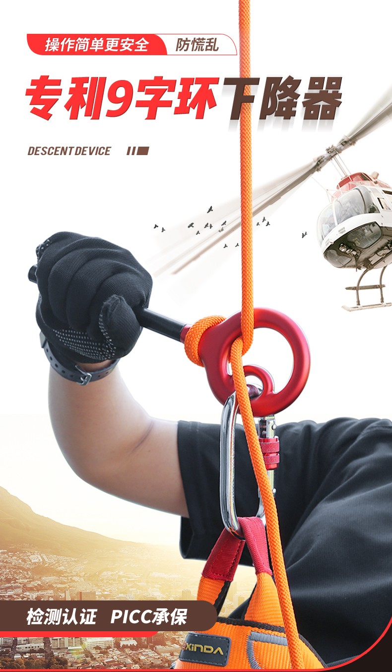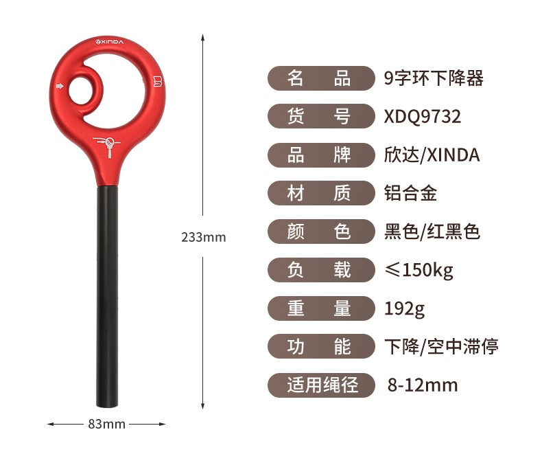 欣达/xinda 户外9字环下降器 可悬停专利款速降器 索降器防慌乱滞停九字环登山攀岩装备 红黑色