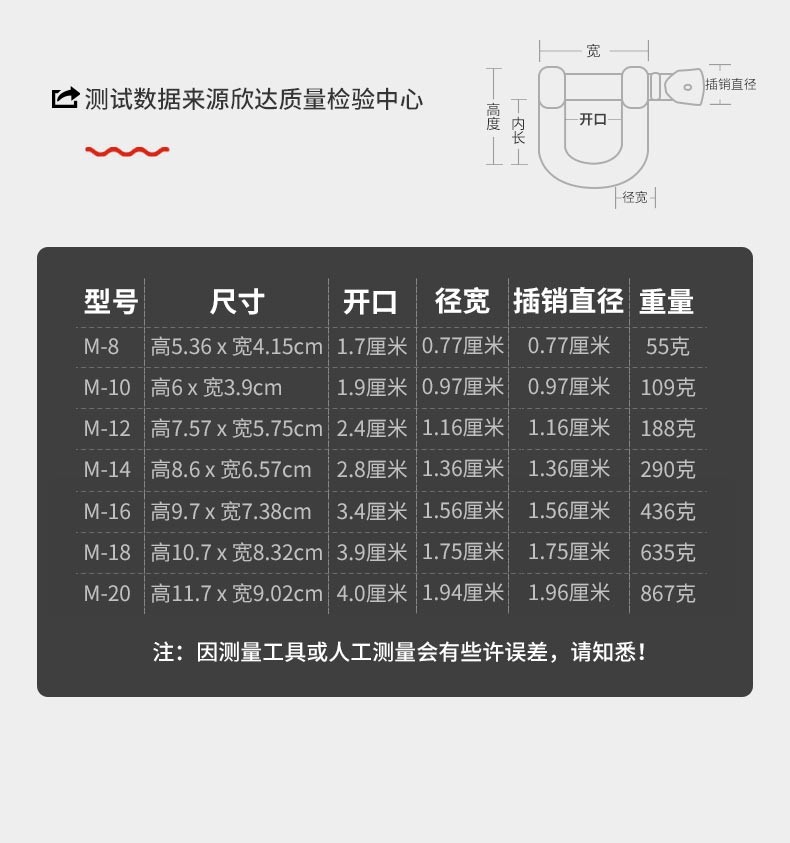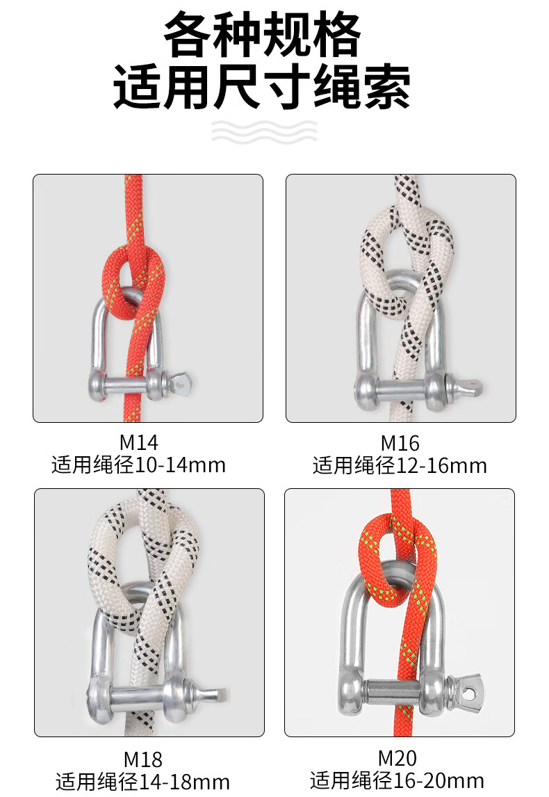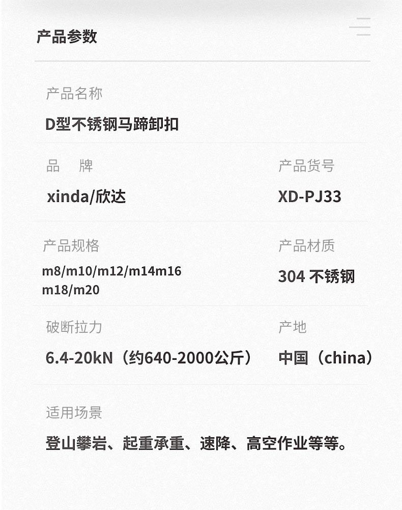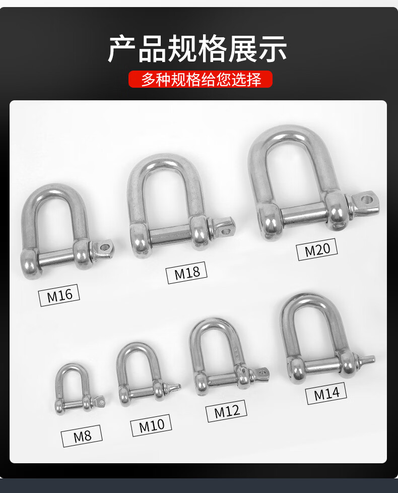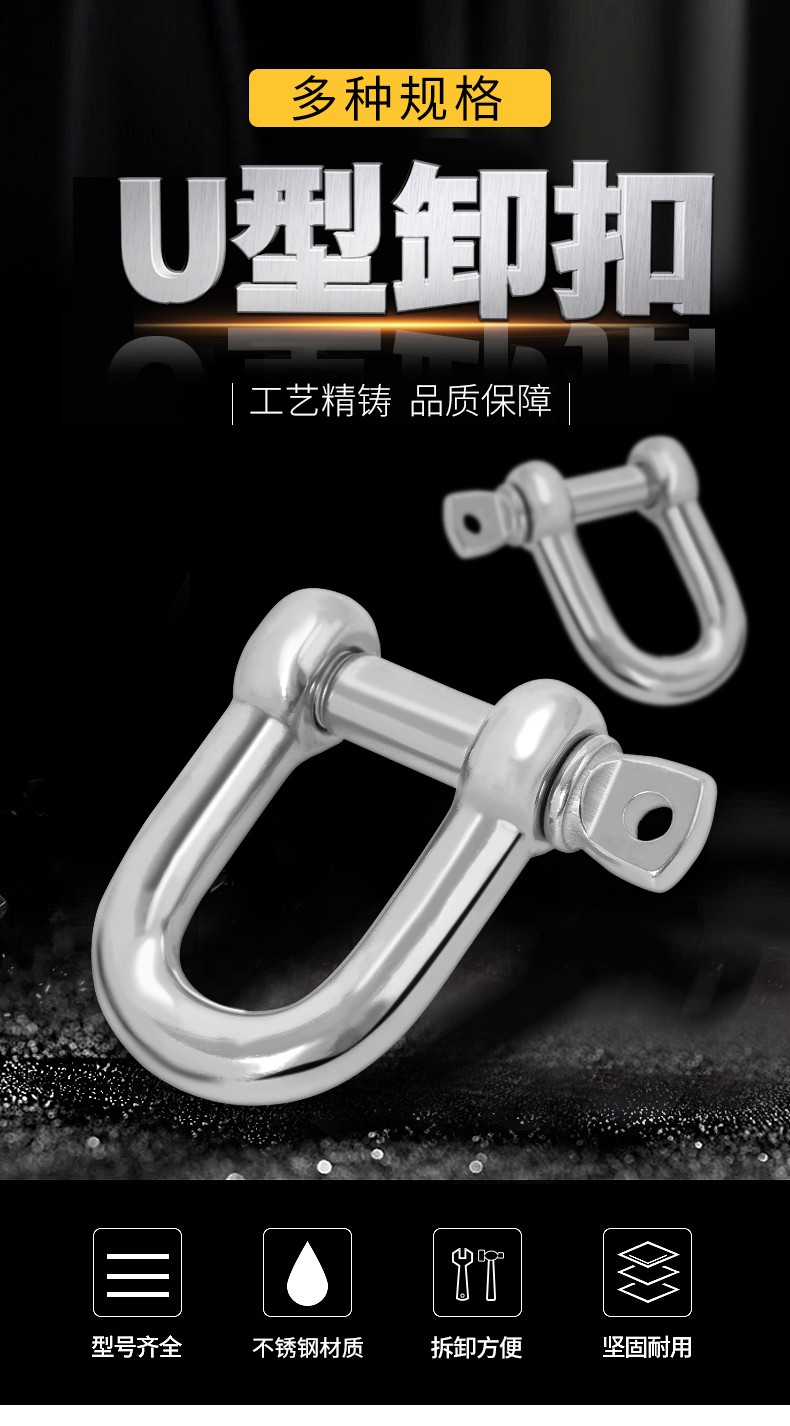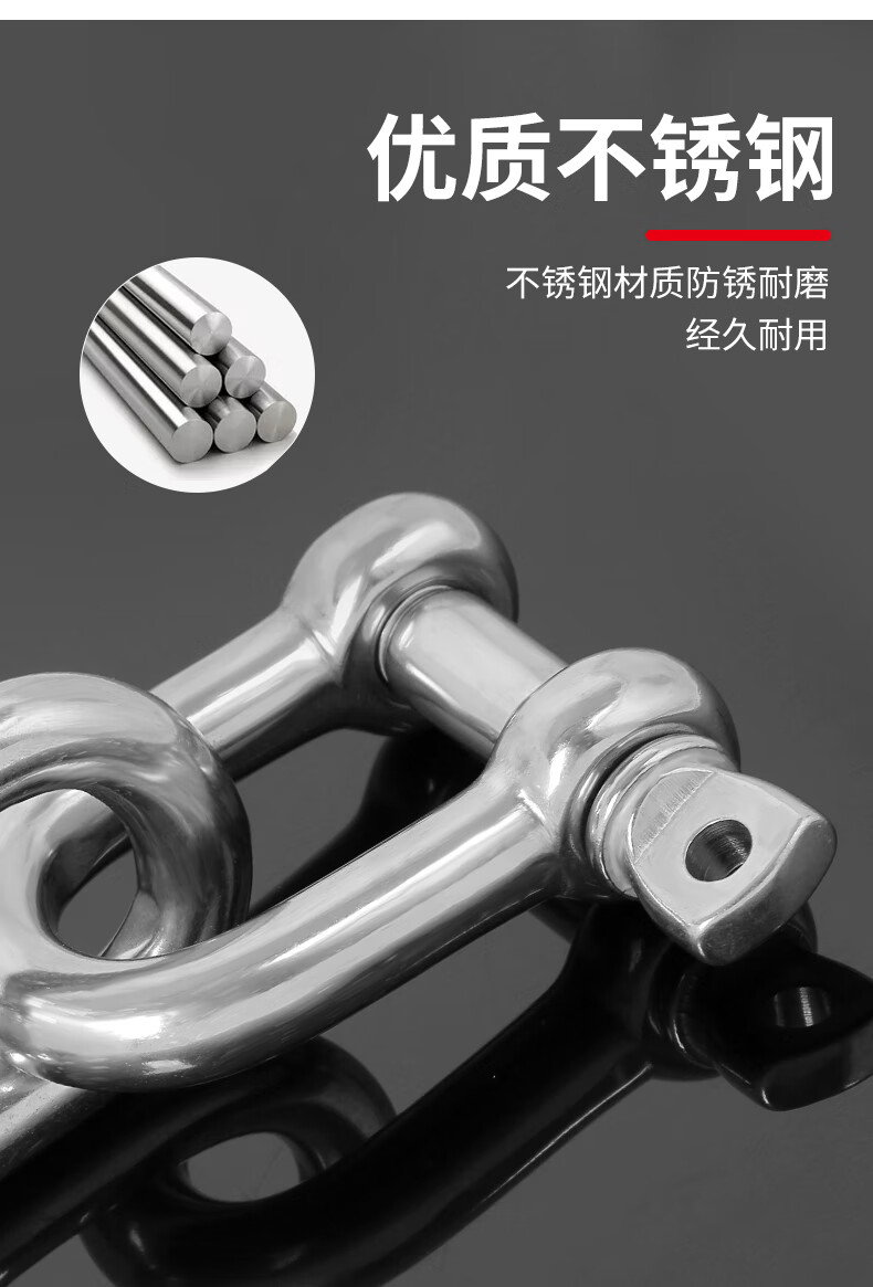 欣达/Xinda 304不锈钢日式D型卸扣弓型环 钢丝绳锁链条连扣U形钢扣马蹄形卸扣高空坐板缓降器 不锈钢卸扣M8